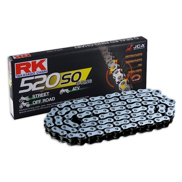 RK520SO har O-ringar för att täta in och bibehålla smörjning i kedjan och leverera jämn effekt med minimalt ringmotstånd och förlust av hästkrafter